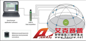 HBK能够提供从传感器到数据采集和分析的一套完整的测量 方案。依据标准进行自由场或近似自由场的声功率测试,系统 如下图。